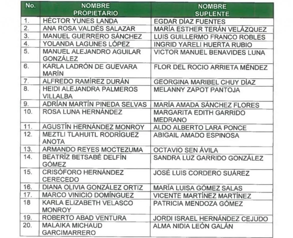 Yolanda Lagunes López está en el cuarto lugar. Su suplente es Ingrid Yareli Huerta Rubio.