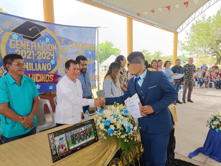 Este honorable plantel educativo nombró como padrino a nuestro alcalde, quien durante la celebración rindió algunas palabras y reflexiones a nuestros jóvenes del TEBAEV así como también se realizó la entrega de algunos presentes a los jóvenes graduados.