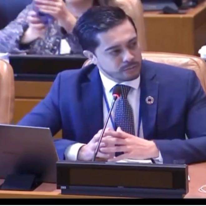Juan Martínez se lleva a Nueva York a su pareja sentimental. El ingeniero Baizabal habla en su nombre en evento de la ONU.