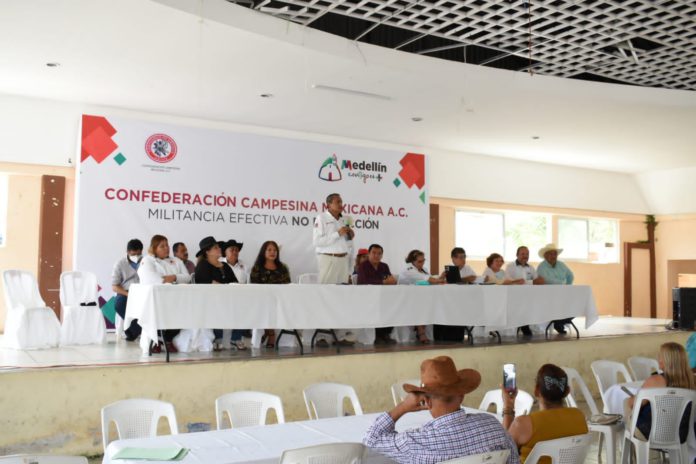 Lo anterior fue manifestado por la síndica del ayuntamiento medellinense, María Concepción Cruz Santos, quien junto con el director de Desarrollo Rural Sustentable, Víctor Rodríguez, representaron al alcalde en la ceremonia realizada con motivo del 89 aniversario de la Confederación Campesina Mexicana, AC, cuyos festejos se llevaron a cabo en el salón social de El Tejar.