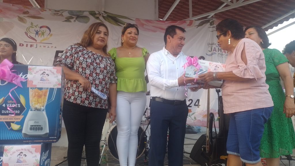 Este 10 de mayo el alcalde de Jamapa Victor Morales Castro festejó a las madres con un evento en el que se regalaron diversos productos de línea blanca como licuadoras, hornos de microondas, planchas, refrigerador, entre otros objetos.