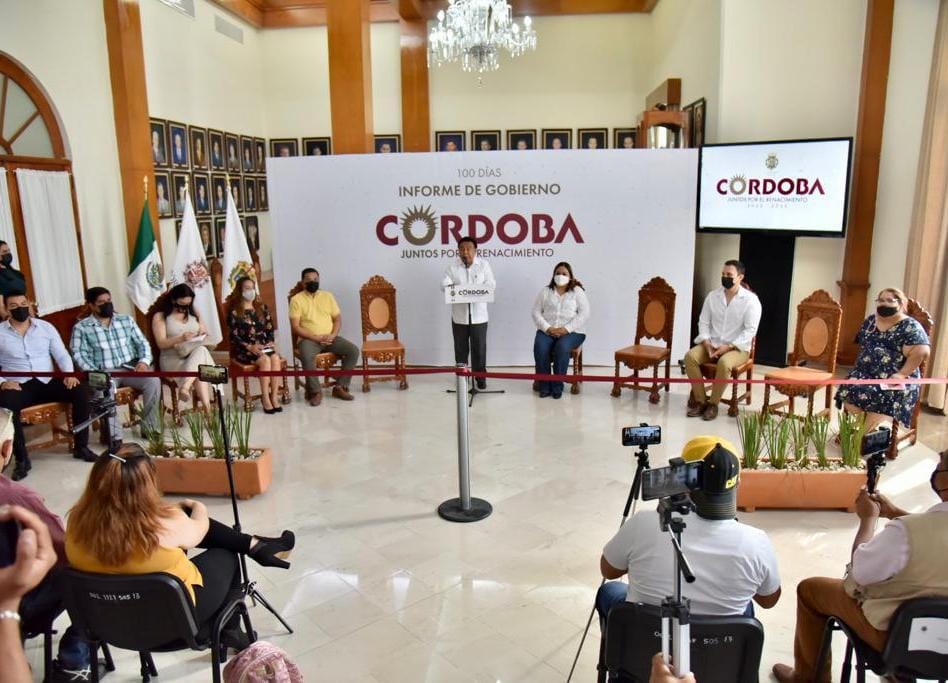 Córdoba, Ver.- El presidente municipal, Juan Martínez Flores, presentó su Informe de Gobierno de los primeros 100 días de labores, reiterando el compromiso de trabajar para lograr el renacimiento de Córdoba a partir de la planeación para que regrese la bonanza económica y el bienestar de la gente.