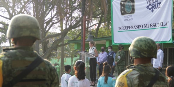 Veracruz, Ver.- La alcaldesa de Veracruz, Patricia Lobeira Rodríguez, en coordinación con la Sexta Región Militar, dio inicio a la campaña “Recuperando mi escuela”, la cual es una labor social en beneficio de la comunidad educativa del municipio, para que niñas, niños y adolescentes regresen a sus clases presenciales en espacios dignos.
