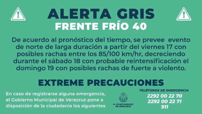 Veracruz, Ver., 16 de marzo de 2023.- El Gobierno Municipal de Veracruz, a través de la Unidad de Protección Civil, informa sobre la Alerta Gris por la entrada del Frente frío No. 40 en el Puerto de Veracruz.