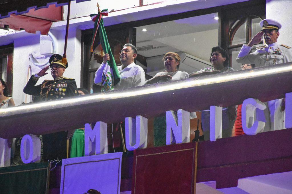 Acompañado de la presidenta del DIF Municipal, Esther Mortera Zetina; de la Síndica, Ana Bertha Hernández Aguilar; de la Diputada Federal, Tania Cruz Santos; Diputada Local, Eusebia Cortés Pérez; y de autoridades navales y militares, Cruz Malpica recordó a los héroes que nos dieron patria y ondeó la Bandera Nacional en el balcón Presidencial del Ayuntamiento.