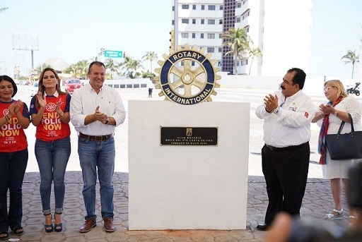 Boca del Río, Ver. a 04 de marzo del 2020.- Esta mañana el presidente municipal de Boca del Río, Humberto Alonso Morelli, llevó a cabo la develación de la Rueda Rotaria, el símbolo del Club Rotario internacional, en compañía del Gobernador del Distrito de Rotary Jesús Pita Barcelata; de su esposa, la presidenta del DIF Karla Robles de Alonso; y del presidente del Club Rotario Boca del Río Costa de Oro, Rogelio Arturo Enríquez Palma.