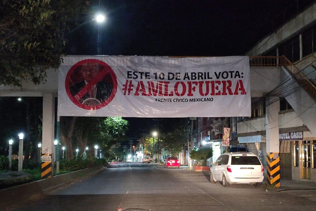 La mañana de este lunes aparecieron lonas con leyendas en contra del presidente Andrés Manuel López Obrador en Xalapa, Coatepec y Poza Rica.