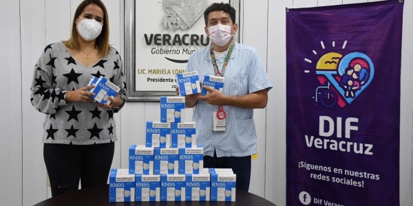 Veracruz, Ver.- Con la finalidad de apoyar al personal de salud de la Torre Pediátrica durante la actual contingencia derivada de la pandemia por COVID-19, el H. Ayuntamiento de Veracruz entregó en donación mil cubrebocas tipo KN95.