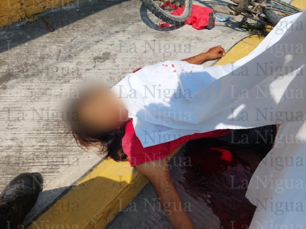 Tecolutla, Ver.- Una verdadera tragedia se vivió en una céntrica arteria de este puerto turístico cuando una jovencita fue asesinada por sujetos desconocidos a bordo de una motocicleta para después huir con rumbo desconocido a unos cuantos metros del parque central.