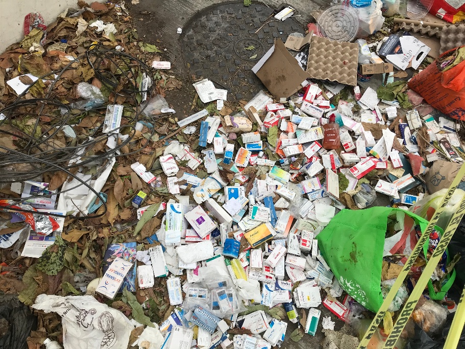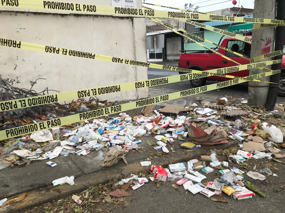 El lugar fue acordonado para evitar que la gente se acercara a tomar las medicinas pues están caducadas. Los niños también corrían peligro de haberse acercado a tomar una caja de medicinas.