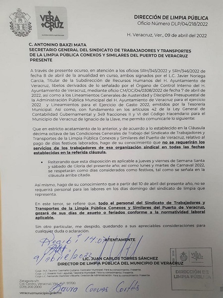 El Ayuntamiento de Veracruz respeta plenamente los derechos laborales de todos los trabajadores del municipio y también mantiene un pleno respeto a la ley.