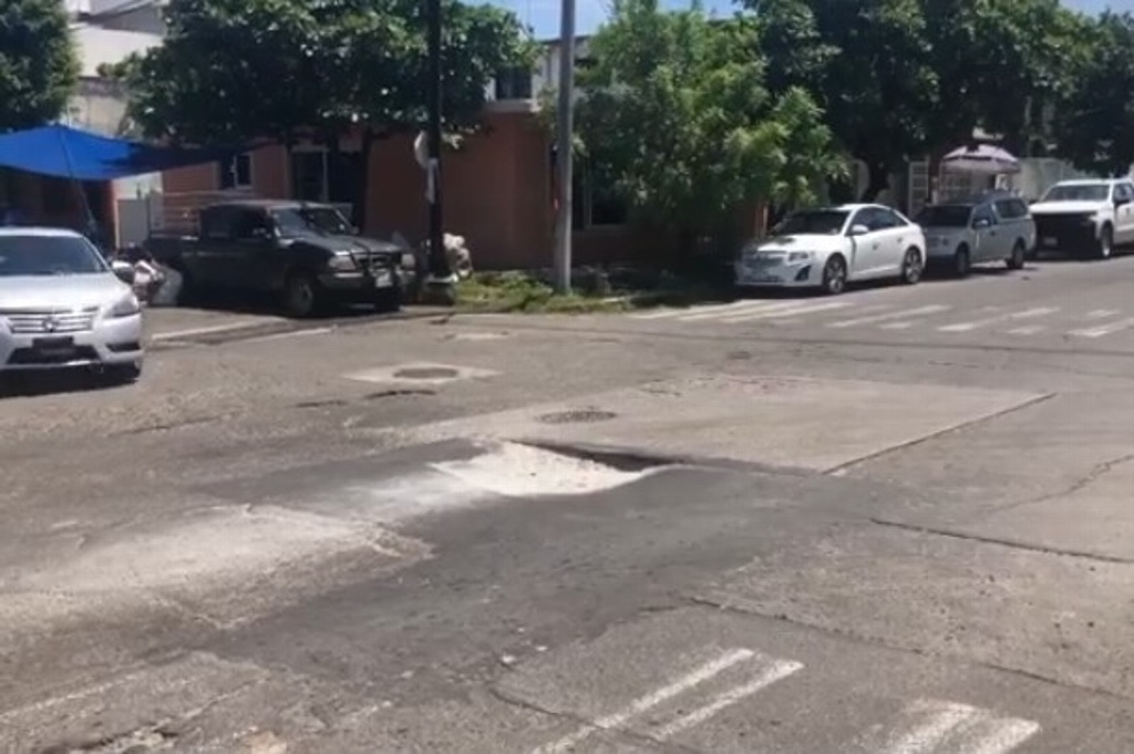 Un gran bache se registró en Allende Norte esquina J.M. García, en la colonia Miguel Alemán de la ciudad de Veracruz.