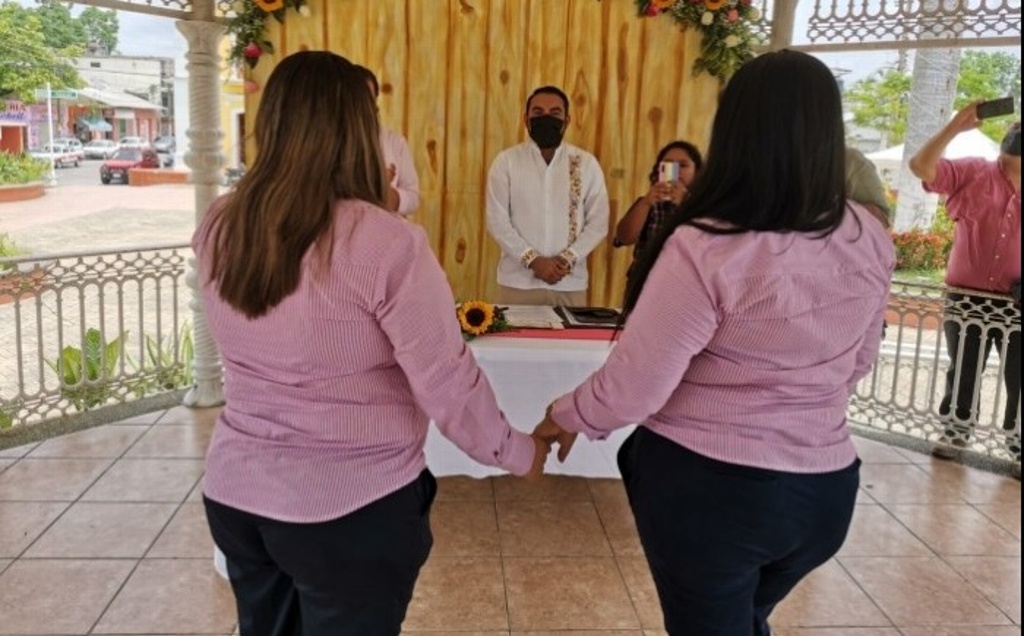 Ante el titular del registro civil de Coatzintla, Carlos Reyes y en el quiosco central del parque frente al palacio municipal las dos mujeres lograron legalizar su unión matrimonial.