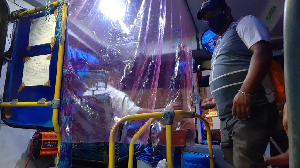 Ante el incremento de casos de Covid-19 en Veracruz y atendiendo a las medidas de seguridad sanitaria para evitar más contagios de esta enfermedad, choferes del transporte público se las han ingeniado para protegerse de este virus.