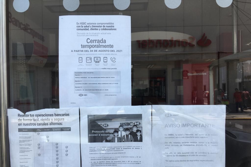 Al menos dos sucursales de este banco permanecen cerradas ante el incremento de casos de COVID-19, cabe mencionar que el municipio de Veracruz se encuentra en color rojo del semáforo de riesgo epidemiológico