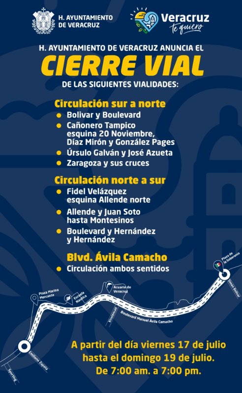 - Circulación sur a norte. Bolívar y Boulevard, Cañonero Tampico esquina 20 de Noviembre, Díaz Mirón y González Pages, Úrsulo Galván y José Azueta, Zaragoza y sus cruces.