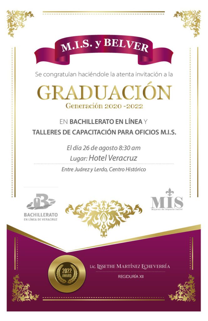 Veracruz, Ver., 25 de agosto de 2022.- Como parte de las acciones en beneficio a la sociedad veracruzana que ha llevado a lo largo de diez años la Lic Lissethe Martínez Echeverria, este viernes en el Hotel Veracruz se realizará la ceremonia de graduación de sus dos principales proyectos en favor de la educación y el impulso económico