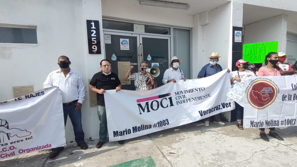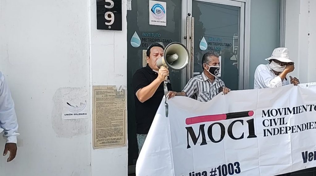 Veracruz, Ver.- Integrantes del Movimiento Civil Independiente y personas de la sociedad civil se manifestaron y tomaron de forma simbólica las oficinas del Instituto Metropolitano del Agua para denunciar el pésimo servicio que ofrece Grupo MAS ya que la empresa no cumple con dotar de agua limpia, no es apta para consumo y el costo de este servicio es excesivo.