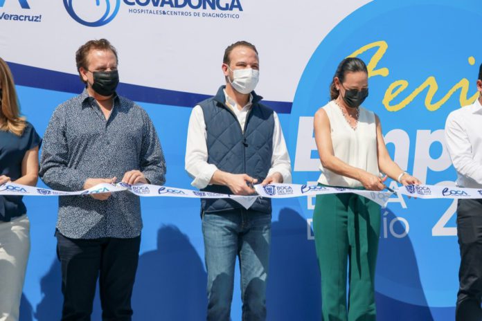 Boca del Río, Ver., 14 de marzo de 2022.- Este lunes, en la explanada de Palacio Municipal, el alcalde Juan Manuel Unánue Abascal inauguró la Feria del Empleo 2022, en la cual se ofertaron más de 500 plazas para conformar el 60% de la plantilla laboral del nuevo Hospital Covadonga en Boca del Río.