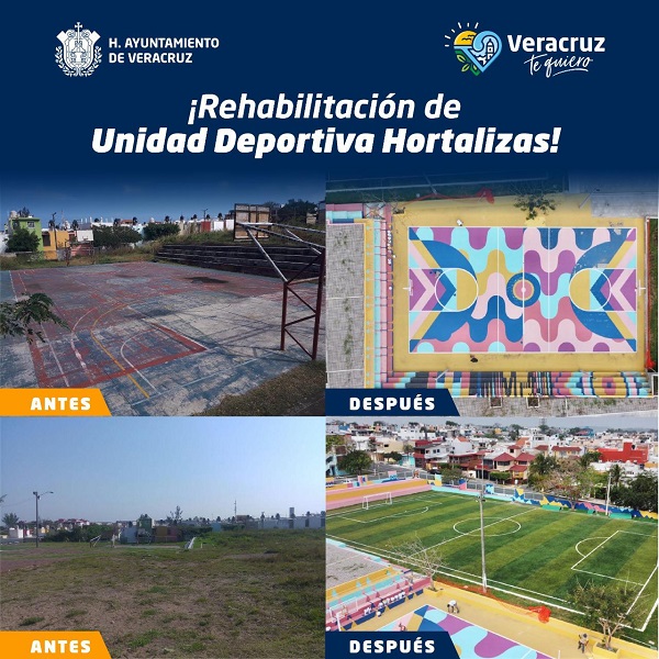 Veracruz, Ver.- Esta mañana, el Presidente Municipal de Veracruz, Fernando Yunes Márquez inauguró las obra de rehabilitación de la Unidad Deportiva Hortalizas, una de las más grandes de todo el municipio con una superficie total de 1.5 hectáreas, ubicada en el fraccionamiento Las Hortalizas Fovissste.