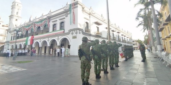 En la ceremonia que se llevó a cabo en el zócalo de Veracruz se le rindieron honores a la bandera de México resaltando el orgullo de ser mexicanos entre los asistentes.