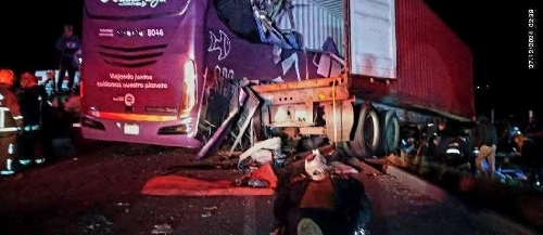 El incidente, registrado alrededor de la 01:00 de la madrugada, involucró la colisión entre un autobús de la línea Autobuses de Oriente (ADO) y un tráiler, a la altura de Los Molinos.