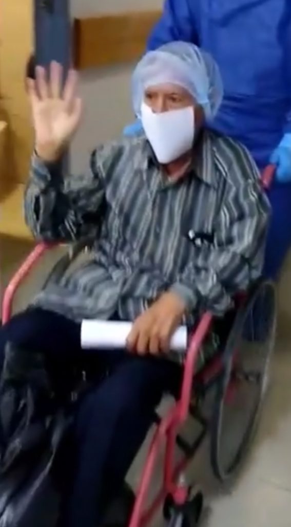 Los pacientes que permanecieron internados en el hospital y ganaron la batalla contra el Covid-19, fueron: Gloria de 30 años, Francisco de 65 años, Luis de 48 años, Juan de 64 años, Arturo de 38 años y Angélica de 44 años. Todos salieron del hospital en silla de ruedas, con cubrebocas y un gorro que les cubría la cabeza.