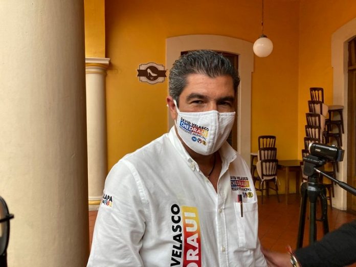 Xalapa, Ver 28 mayo 2021.- David Velasco Chedraui, candidato de la alianza “Veracruz Va” a la presidencia municipal de Xalapa, hizo un llamado enérgico a las autoridades para que permitan unas elecciones pacíficas e imparciales e insistió en que “saquen las manos del proceso electoral y dejen de favorecer al morenista Ricardo Ahued Bardahuil”.