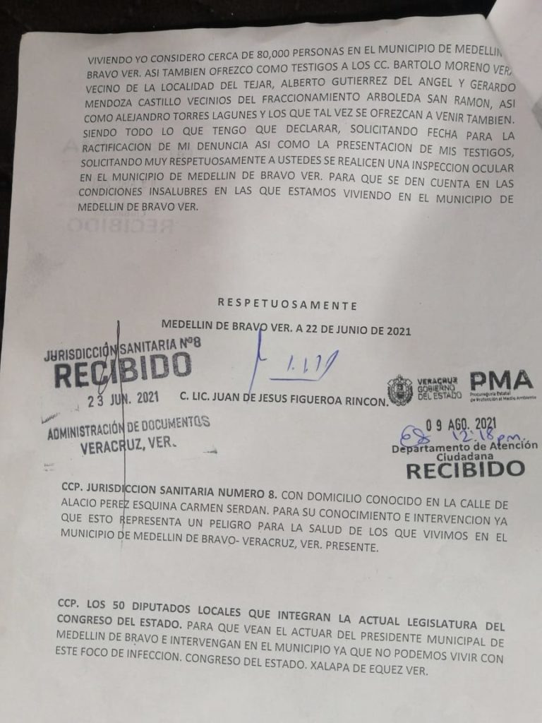Los vecinos de Medellín de Bravo se armaron de valor y decidieron denunciar a Polo Deschamps ante la Procuraduría estatal del Medio Ambiente.