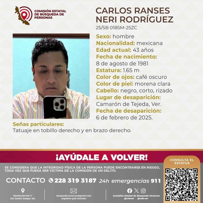 El lugar de desaparición se dio en el municipio de Camarón Tejeda, y como señas particulares tatuaje en tobillo derecho y en brazo derecho.