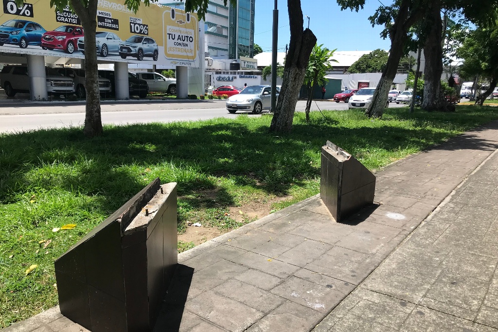 En algunas partes del camellón sobre la avenida Salvador Diaz Mirón en la colonia Centro de la ciudad de Veracruz, se aprecia que la parte metálica de las bancas han desaparecido. Se desconoce las razones reales del que ya estén inservibles.