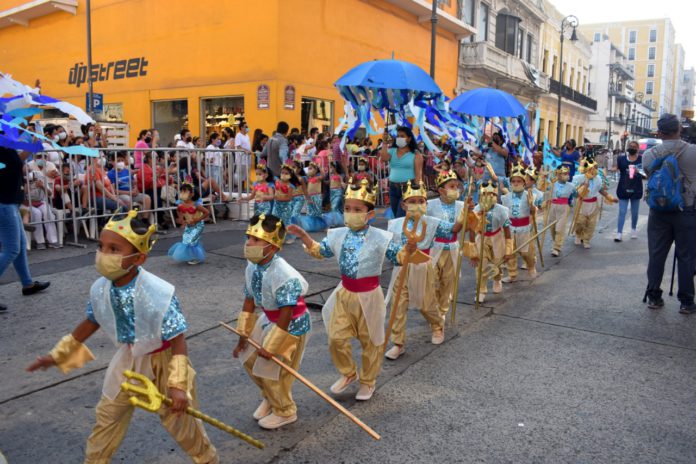 El colorido y vistoso desfile fue presenciado por la presidenta del DIF Municipal, Xóchitl Arzaba quien llevó la representación de la alcaldesa de Veracruz, Patricia Lobeira de Yunes.