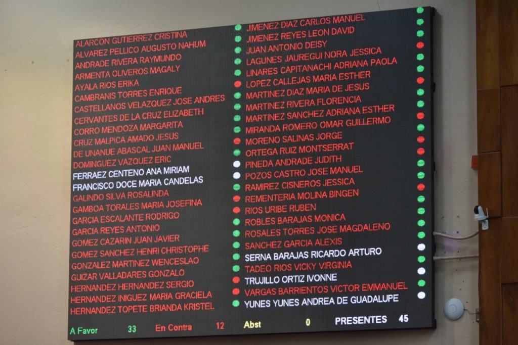 Por incumplimiento de los requisitos de ingreso y permanencia, con 33 votos, la LXV Legislatura determinó la separación del ciudadano Jorge Winckler Ortiz del cargo de Fiscal General del Estado, conforme al Proyecto de Punto de Acuerdo puesto a consideración por la Junta de Coordinación Política.