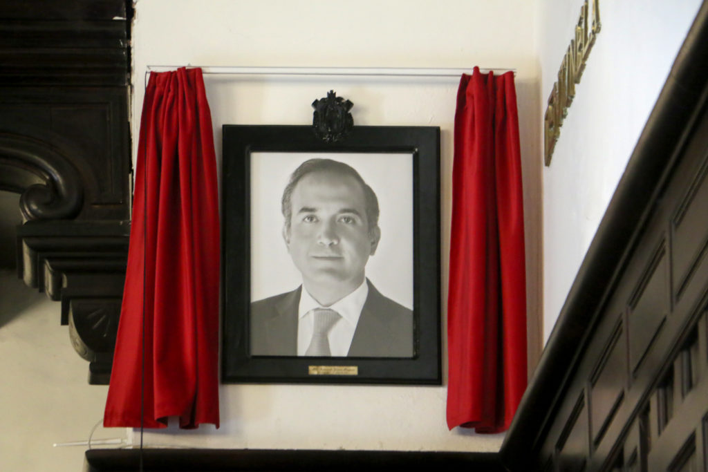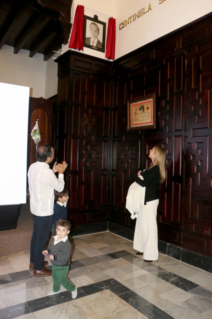 A unos días de dejar el cargo de alcalde de Veracruz, Fernando Yunes Márquez develó su fotografía oficial en la sala de cabildo del Ayuntamiento de Veracruz, donde llegó acompañado de su esposa Mariela Lohmann de Yunes y sus hijos Jerónimo, Lázaro y Eugenio.