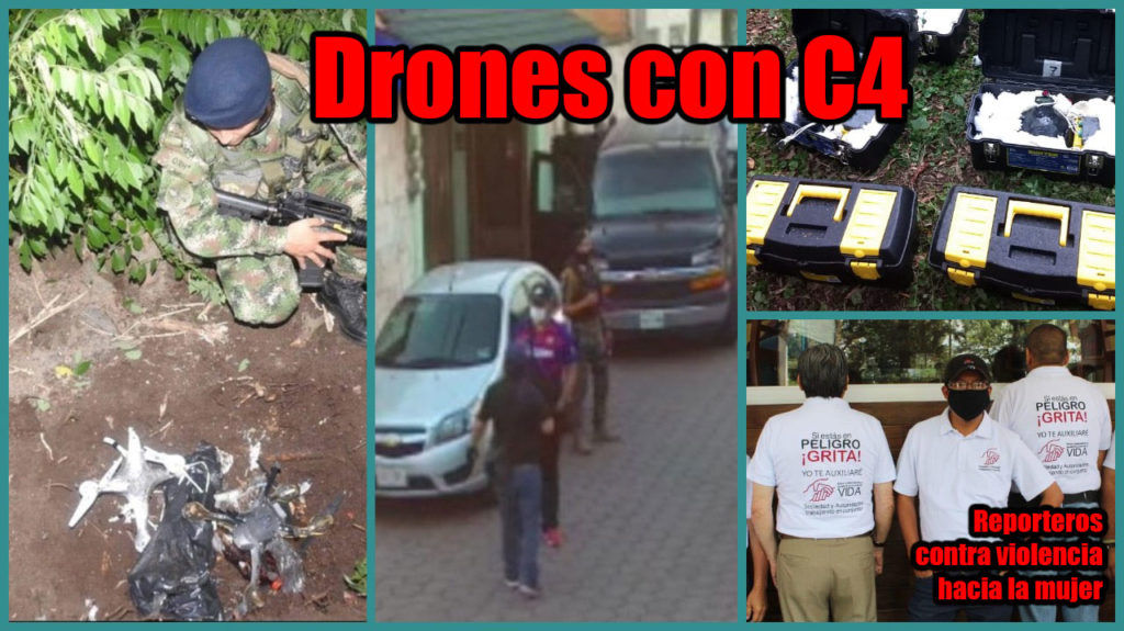 Tampoco es privativo de México; en Colombia también se han detectado los drones explosivos como la nueva arma de los grupos narcocriminales de la selva. Según una nota del portal Infobae, de octubre de 2019: “el Ejército colombiano a finales del mes pasado encontró dos drones Syma cargados con 600 gramos de explosivo plástico escondidos en un área boscosa de la vía que comunica los municipios de Pasto y Tumaco en el departamento de Nariño”.