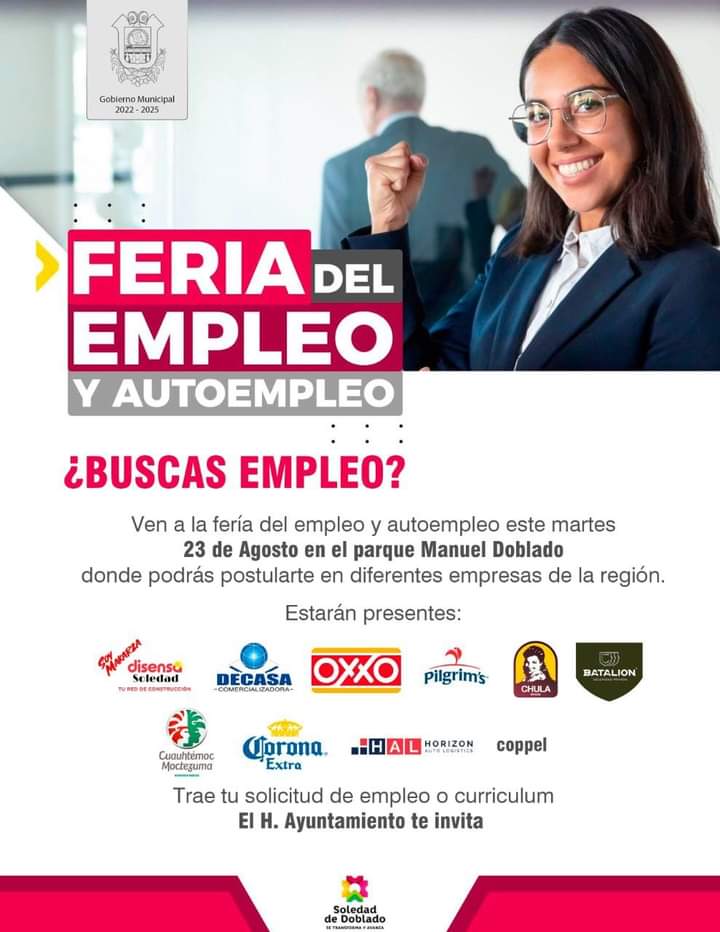 Este martes 23 de agosto se llevará a cabo la primera feria del Empleo y Autoempleo en el parque Manuel Doblado dónde podrás postularte en diferentes empresas de la región.