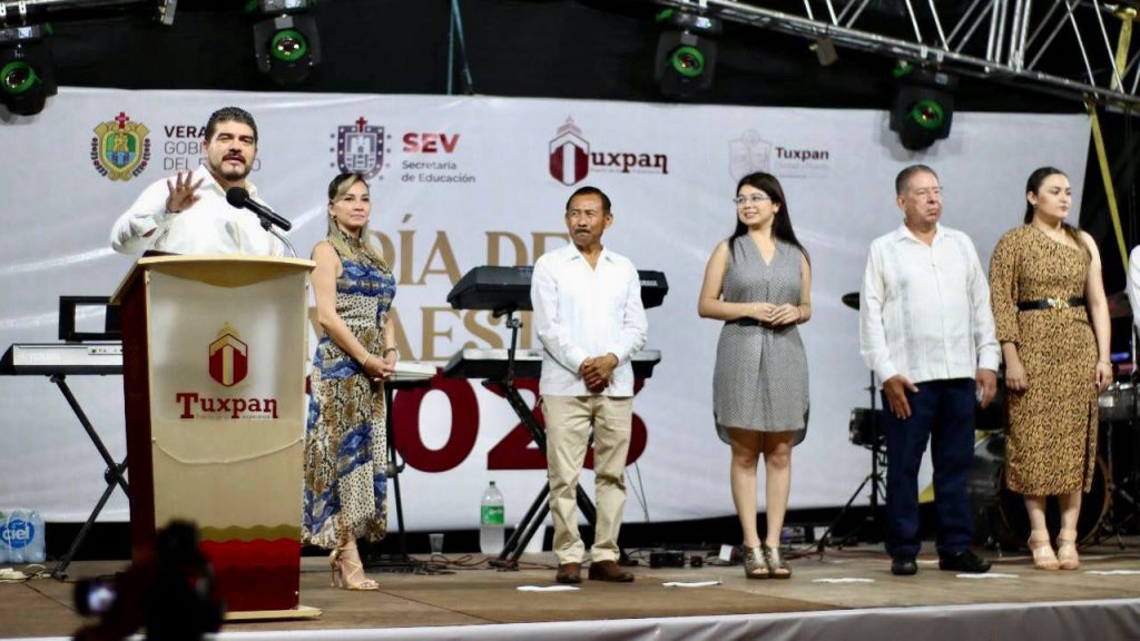 Tuxpan, Ver.- El secretario de Educación, Zenyazen Escobar García, reconoció la labor que las y los trabajadores del magisterio desempeñan como agentes de cambio social. Tras asistir al festejo por el día de la Maestra y el Maestro en este municipio, recordó que desde hace 10 años el magisterio ha sido un pilar importante en el impulso de la llegada de la Cuarta Transformación al país, como sucedió al luchar en contra de la reforma educativa.
