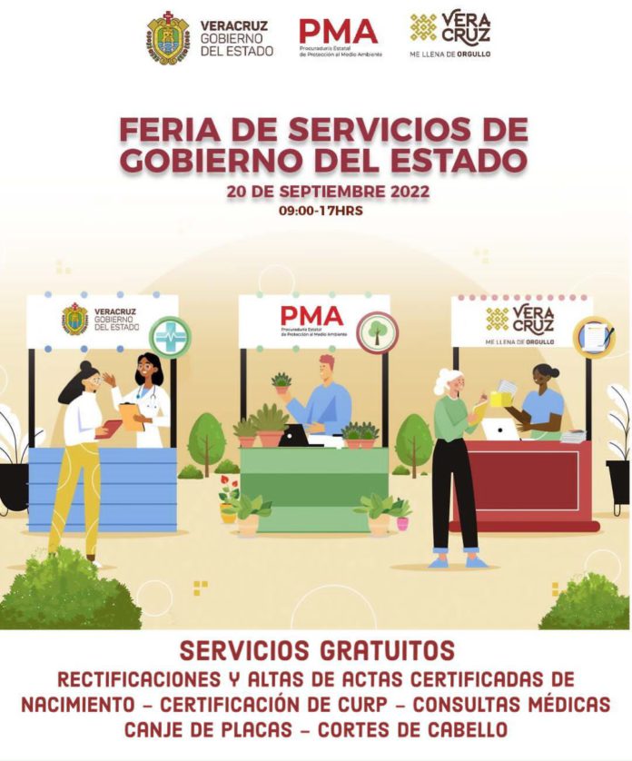 La Feria de Servicios se realizará el próximo martes 20 de septiembre en un horario de 9 am a 5 pm, en el estacionamiento de la unidad deportiva “Leyes de Reforma”, a un costado de lo que será la nueva sede de la PMA, ubicada en Paseo de Las Flores, en el fraccionamiento Virginia de Boca del Río.