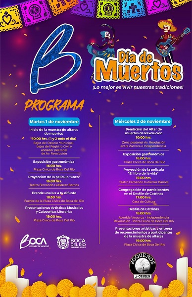 Por ello, el Ayuntamiento boqueño, presenta una serie de actividades, con las que se enaltece una de las fiestas mexicanas con mayor tradición, destacando la unidad familiar, además de reforzar la cultura ancestral, esto durante el 1 y 2 de noviembre.