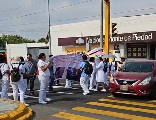 Por segundo día consecutivo, personal del Instituto Mexicano del Seguro Social del Hospital de Alta Especialidad número 14 se manifiestan en protesta por la falta de aire acondicionado y elevadores. Reclaman que no han tenido respuesta pese a que han exhibido las condiciones en las que laboran y se atienden a los pacientes.