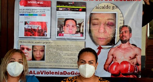 En un pancarta que mostraron las denunciantes se podía apreciar la imagen del candidato a la alcaldía de Medellín de Bravo y militantes del Partido Verde Ecologista de México (PVEM), Marcos Isleño Andrade, quien fue denunciado en noviembre del 2013 por haber golpeado a su pareja sentimental, dejándola con dos esguinces, fractura de costillas, ojos morados y la cara inflamada de los golpes propinados por este salvaje personaje.