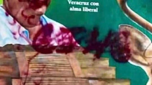 En Misantla grupo criminal vandaliza mural de Eric Cisneros Burgos