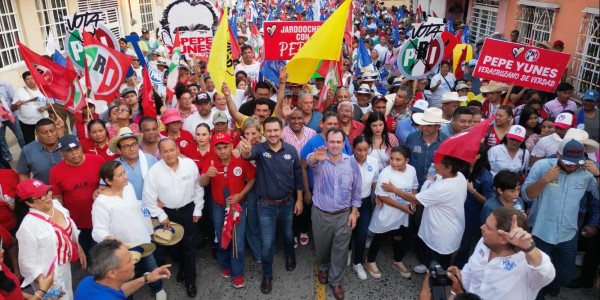 Alvarado, Ver.- Con un espectacular evento masivo en una de las principales calles de Alvarado, fueron recibidos los candidatos por la coalición PAN-PRI-PRD “Fuerza y Corazón por Veracruz”, donde Miguel Ángel Yunes Márquez, candidato al Senado de la República, acompañó a Pepe Yunes, candidato al gobierno de Estado de Veracruz, así como los aspirantes a la diputación local y federal por el Distrito 17, Guty Lagunes y Aidé Montero.