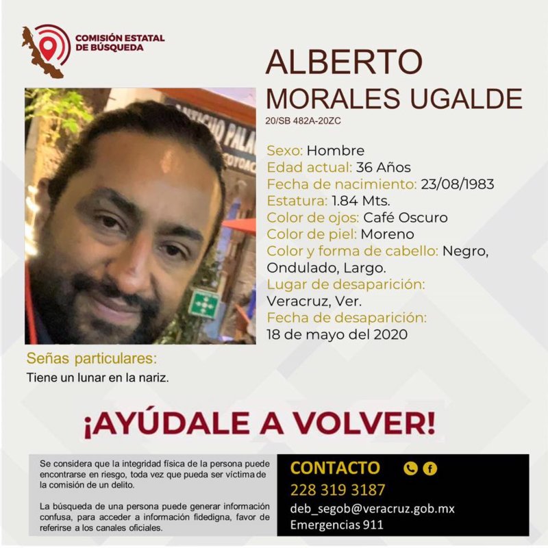 Uno de los que no se sabe su paradero es Alberto Morales Ugalde, quien tiene 36 años de edad, mide 1.84 metros, es de ojos café oscuro, tez morena, cabello ondulado, largo y tiene un lunar en la nariz.