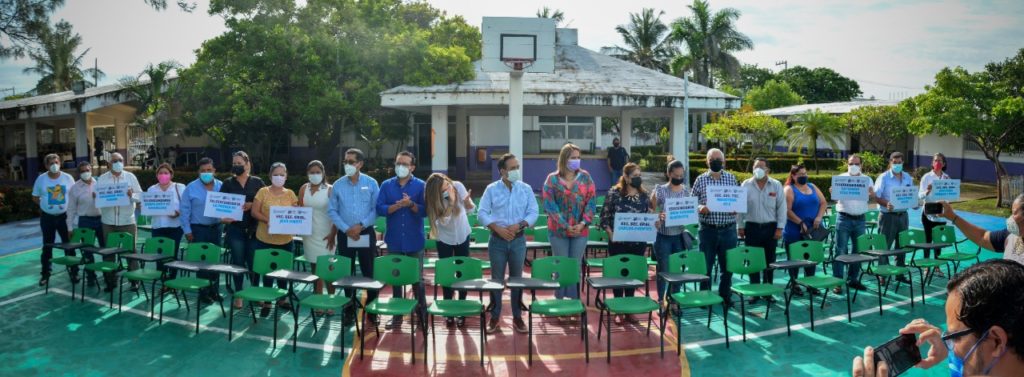 De esta manera, el H. Ayuntamiento de Veracruz aporta desde su compromiso iniciado al principio de la presente administración la entrega de mil 100 mesa bancas, en beneficio de las siguientes escuelas de nivel secundaria: Secundaria General Salvador Díaz Mirón, Secundaria General José Martí, Secundaria Técnica Industrial #136; Secundaria General Carlos Fuentes, Secundaria General José María Morelos y Pavón, Secundaria Técnica Industrial #2, Telesecundaria La Patria es Primero; Telesecundaria Carmen Serdán Alatriste, Telesecundaria Josefa Ortiz de Domínguez y Telesecundaria Salvador Díaz Mirón.