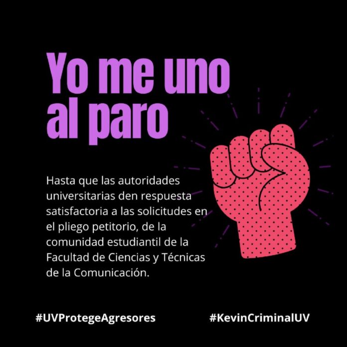 Desde este lunes 23 de noviembre, comenzó el paro indefinido de estudiantes de la Facultad de Ciencias de la Comunicación (Facico) de la Universidad Veracruzana quienes exigen que su compañero Kevin sea expulsado definitivamente de la máxima casa de estudios pues cometió violencia de género en contra de su compañera Isabel Lugardo a la que le sustrajo de su computadora unas fotos íntimas, las cuales compartió en internet y con estudiantes de la Facico sin el consentimiento de la víctima.