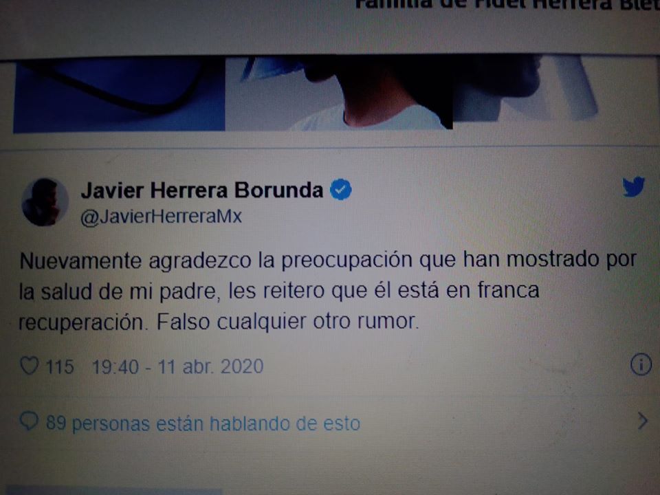 El hijo del tío Fide, Javier Herrera, declaró que su padre había sufrido un episodio cerebro vascular que ya había sido controlado y esperaban que dentro de poco fuera dado de alta de los cuidados hospitalarios.