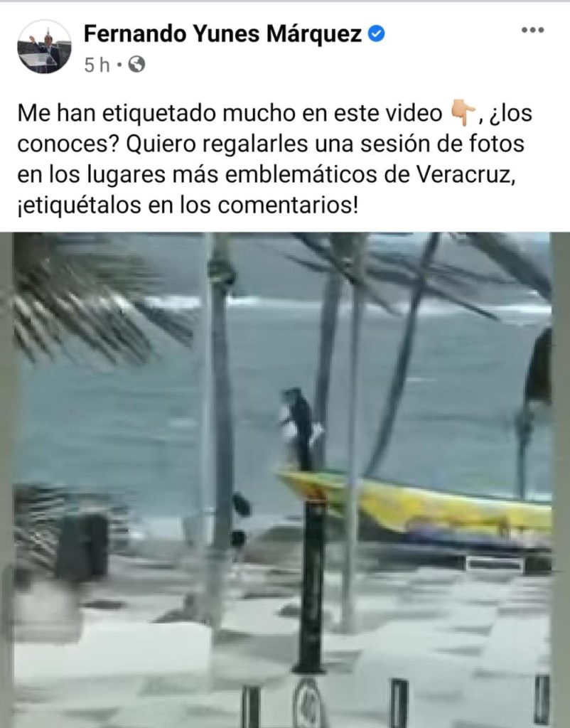 “Me han etiquetado mucho en este video, ¿los conoces? Quiero regalarles una sesión de fotos en los lugares más emblemáticos de Veracruz, ¡etiquétalos en los comentarios!” escribió el alcalde de Veracruz en su cuenta de Facebook lanzando una convocatoria para encontrar a la pareja para obsequiarles una sesión de fotos en los lugares más emblemáticos de Veracruz.