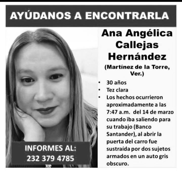 De acuerdo con el parte policíaco, la trabajadora bancaria habría sido privada de su libertad ayer viernes 14 de marzo en la colonia Las Lomas y hoy fue localizada en la comunidad La Piedrilla, perteneciente al municipio de Martínez de la Torre, junto con una cartulina que mostraba un mensaje amenazante.