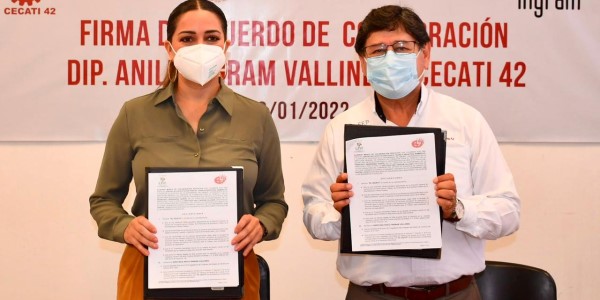 Veracruz, Ver.- Con el objetivo de empoderar a las mujeres y apoyar a los sectores más vulnerables, la diputada local Anilú Ingram Vallines firmó un convenio de colaboración con el CECATI 42, representado por su director, Francisco Hernández García.